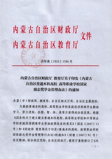 内蒙国家奖学金管理办法内财教【2016】1589号