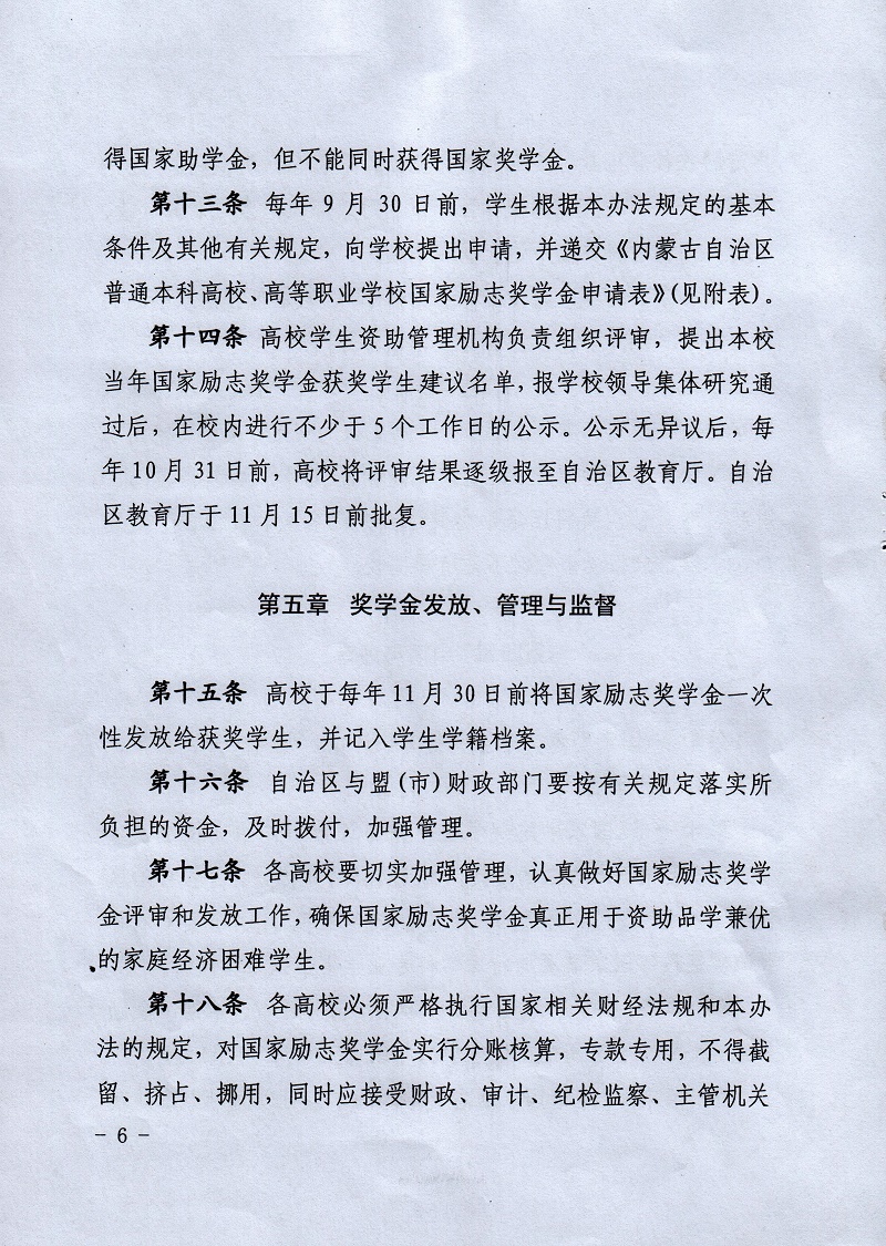 内蒙国家励志奖学金管理办法内财教【2016】1586号